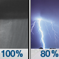 Temperature: 63°F Wind Speed: 5 to 10 mph Wind Direction: SSE Forecast: Showers and thunderstorms. Cloudy, with a high near 63. South southeast wind 5 to 10 mph. Chance of precipitation is 90%. New rainfall amounts between a half and three quarters of an inch possible. |