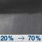 Temperature: 49°F Wind Speed: 5 mph Wind Direction: SW Forecast: Rain showers likely. Mostly cloudy, with a low around 49. Southwest wind around 5 mph. Chance of precipitation is 70%. |
