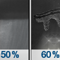 Temperature: 50°F Wind Speed: 0 to 5 mph Wind Direction: S Forecast: Rain showers likely. Cloudy, with a high near 50. Chance of precipitation is 70%. |