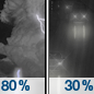 Temperature: 45°F Wind Speed: 8 mph Wind Direction: SSE Forecast: Showers and thunderstorms likely before 7pm, then rain. Mostly cloudy, with a low around 45. South southeast wind around 8 mph. Chance of precipitation is 80%. New rainfall amounts between a tenth and quarter of an inch possible. |