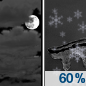Temperature: 17°F Wind Speed: 9 mph Wind Direction: SSW Forecast: Snow likely. Mostly cloudy, with a low around 17. Chance of precipitation is 60%. |