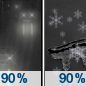 Temperature: 28°F Wind Speed: 6 to 12 mph Wind Direction: N Forecast: Rain and patchy fog before 1am, then freezing rain likely and rain likely between 1am and 4am, then snow likely and freezing rain likely. Cloudy, with a low around 28. North wind 6 to 12 mph. Chance of precipitation is 90%. New snow accumulation of less than half an inch possible. Little or no ice accumulation expected. |
