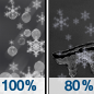 Temperature: 24°F Wind Speed: 6 to 10 mph Wind Direction: N Forecast: Sleet and freezing rain before 4am, then a chance of snow. Cloudy, with a low around 24. Chance of precipitation is 100%. New snow accumulation of 1 to 2 inches possible. New ice accumulation of less than half an inch possible. |
