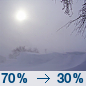 Temperature: 31°F Wind Speed: 2 to 6 mph Wind Direction: NW Forecast: A chance of snow. Mostly cloudy, with a high near 31. Chance of precipitation is 40%. |