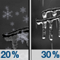 Temperature: 18°F Wind Speed: 5 mph Wind Direction: W Forecast: A chance of snow showers before 7pm, then a chance of freezing rain. Mostly cloudy, with a low around 18. Chance of precipitation is 30%. |