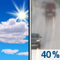 Temperature: 49°F Wind Speed: 2 mph Wind Direction: W Forecast: A chance of rain. Mostly sunny, with a high near 49. Chance of precipitation is 40%. |