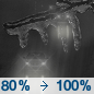 Temperature: 32°F Wind Speed: 2 to 7 mph Wind Direction: S Forecast: Freezing rain and rain after 7pm. Cloudy. Low around 32, with temperatures rising to around 41 overnight. South wind 2 to 7 mph. Chance of precipitation is 100%. New rainfall amounts between a quarter and half of an inch possible. |