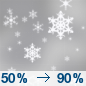 Temperature: 31°F Wind Speed: 14 to 17 mph Wind Direction: SW Forecast: Snow. Cloudy, with a high near 31. Southwest wind 14 to 17 mph. Chance of precipitation is 90%. New snow accumulation of less than one inch possible. |