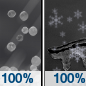 Temperature: 34°F Wind Speed: 5 mph Wind Direction: NE Forecast: Snow and freezing rain likely. Cloudy, with a high near 34. Northeast wind around 5 mph. Chance of precipitation is 100%. New snow accumulation of less than one inch possible. |