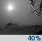 Temperature: 23°F Wind Speed: 10 to 25 mph Wind Direction: WSW Forecast: A chance of snow. Mostly cloudy. High near 23, with temperatures falling to around 13 in the afternoon. West southwest wind 10 to 25 mph, with gusts as high as 35 mph. Chance of precipitation is 40%. |