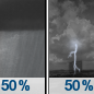 Temperature: 72°F Wind Speed: 12 mph Wind Direction: WSW Forecast: A chance of showers and thunderstorms. Mostly sunny, with a high near 72. Chance of precipitation is 50%. |