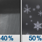 Temperature: 40°F Wind Speed: 9 to 13 mph Wind Direction: SW Forecast: A slight chance of rain and snow after 1pm. Mostly cloudy, with a high near 40. Chance of precipitation is 20%. |