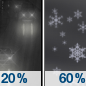 Temperature: 17°F Wind Speed: 10 mph Wind Direction: W Forecast: A slight chance of snow before 7pm. Partly cloudy, with a low around 17. |
