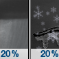 Temperature: 37°F Wind Speed: 10 mph Wind Direction: N Forecast: A slight chance of snow showers and a slight chance of sleet and a slight chance of freezing rain. Mostly cloudy, with a high near 37. North wind around 10 mph, with gusts as high as 20 mph. Chance of precipitation is 20%. |