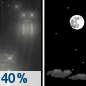 Temperature: 40°F Wind Speed: 7 mph Wind Direction: SSW Forecast: Rain likely. Mostly cloudy, with a low around 40. |