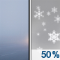 Temperature: 35°F Wind Speed: 7 mph Wind Direction: S Forecast: A chance of rain. Mostly cloudy, with a low around 35. Chance of precipitation is 50%. |