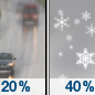 Temperature: 16°F Wind Speed: 9 mph Wind Direction: N Forecast: A chance of rain and snow before 1am. Mostly cloudy, with a low around 16. Chance of precipitation is 40%. New snow accumulation of less than half an inch possible. |