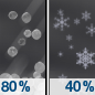 Temperature: 6°F Wind Speed: 3 mph Wind Direction: SE Forecast: Snow likely. Mostly cloudy, with a low around 6. Chance of precipitation is 70%. |