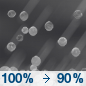 Temperature: 34°F Wind Speed: 6 mph Wind Direction: S Forecast: Rain. Cloudy, with a low around 34. Chance of precipitation is 90%. |