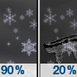 Temperature: 20°F Wind Speed: 13 to 17 mph Wind Direction: S Forecast: Snow after 3pm. Mostly cloudy. High near 20, with temperatures falling to around 17 in the afternoon. Wind chill values as low as -14. South wind 13 to 17 mph, with gusts as high as 28 mph. Chance of precipitation is 90%. New snow accumulation of less than one inch possible. |