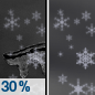 Temperature: 27°F Wind Speed: 5 to 12 mph Wind Direction: NW Forecast: A chance of freezing rain between 8pm and 11pm, then a slight chance of rain and snow between 11pm and midnight, then a chance of snow showers between midnight and 2am. Mostly cloudy. Low around 27, with temperatures rising to around 30 overnight. Northwest wind 5 to 12 mph. Chance of precipitation is 30%. Little or no ice accumulation expected. |