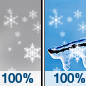 Temperature: 25°F Wind Speed: 10 to 15 mph Wind Direction: NE Forecast: Snow before 1pm, then snow and sleet and freezing rain. Cloudy, with a high near 25. Chance of precipitation is 100%. New snow accumulation of 4 to 8 inches possible. |