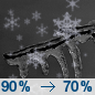 Temperature: 21°F Wind Speed: 10 to 15 mph Wind Direction: N Forecast: Snow and sleet and freezing rain. Mostly cloudy, with a low around 21. Chance of precipitation is 90%. |