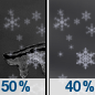 Temperature: 41°F Wind Speed: 1 to 8 mph Wind Direction: NE Forecast: A chance of rain. Cloudy, with a high near 41. Northeast wind 1 to 8 mph. Chance of precipitation is 50%. New rainfall amounts between a tenth and quarter of an inch possible. |
