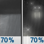 Temperature: 44°F Wind Speed: 5 mph Wind Direction: SSE Forecast: Rain showers likely before 4am, then rain likely. Mostly cloudy. Low around 44, with temperatures rising to around 46 overnight. South southeast wind around 5 mph. Chance of precipitation is 70%. New rainfall amounts between a tenth and quarter of an inch possible. |