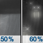 Temperature: 48°F Wind Speed: 6 mph Wind Direction: S Forecast: A chance of rain. Partly cloudy, with a low around 48. |