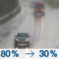 Temperature: 26°F Wind Speed: 9 to 15 mph Wind Direction: W Forecast: Rain likely before 10pm, then a chance of rain and snow. Mostly cloudy, with a low around 26. West wind 9 to 15 mph, with gusts as high as 25 mph. Chance of precipitation is 60%. New rainfall amounts between a tenth and quarter of an inch possible. |