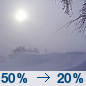 Temperature: 15°F Wind Speed: 10 to 15 mph Wind Direction: W Forecast: A slight chance of snow before noon. Partly sunny, with a high near 15. West wind 10 to 15 mph. Chance of precipitation is 20%. |