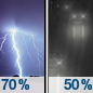 Temperature: 58°F Wind Speed: 2 to 7 mph Wind Direction: S Forecast: Rain likely before 4pm, then showers and thunderstorms likely. Mostly cloudy, with a high near 58. Chance of precipitation is 70%. New rainfall amounts between a quarter and half of an inch possible. |