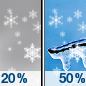 Temperature: 21°F Wind Speed: 5 mph Wind Direction: N Forecast: A slight chance of snow before midnight. Mostly cloudy, with a low around 21. North wind around 5 mph. Chance of precipitation is 20%. New snow accumulation of less than half an inch possible. |