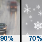 Temperature: 33°F Wind Speed: 2 to 6 mph Wind Direction: WSW Forecast: Rain and snow likely before 7pm, then rain and snow likely between 7pm and 8pm, then rain and snow likely between 8pm and 4am. Mostly cloudy, with a low around 33. West southwest wind 2 to 6 mph. Chance of precipitation is 60%. New rainfall amounts less than a tenth of an inch possible. |