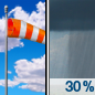 Temperature: 60°F Wind Speed: 20 to 30 mph Wind Direction: S Forecast: A chance of rain showers after 4pm. Mostly sunny, with a high near 60. South wind 20 to 30 mph, with gusts as high as 45 mph. Chance of precipitation is 30%. New rainfall amounts less than a tenth of an inch possible. |