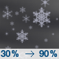 Temperature: 23°F Wind Speed: 5 mph Wind Direction: SW Forecast: A chance of snow. Mostly cloudy, with a low around 23. Southwest wind around 5 mph. Chance of precipitation is 30%. |