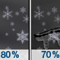 Temperature: 26°F Wind Speed: 6 mph Wind Direction: SW Forecast: Snow before 2am, then a chance of snow and a chance of freezing rain between 2am and 4am. Cloudy, with a low around 26. Southwest wind around 6 mph. Chance of precipitation is 80%. New snow accumulation of 3 to 5 inches possible. |
