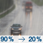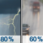 Temperature: 47°F Wind Speed: 6 mph Wind Direction: SSE Forecast: Rain. Cloudy, with a high near 47. South southeast wind around 6 mph. Chance of precipitation is 80%. |