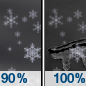 Temperature: 11°F Wind Speed: 3 mph Wind Direction: NE Forecast: Snow before 1am, then snow and a slight chance of freezing rain. Cloudy, with a low around 11. Chance of precipitation is 100%. New snow accumulation of 1 to 2 inches possible. |