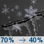 Temperature: 12°F Wind Speed: 5 mph Wind Direction: NW Forecast: Snow likely and a slight chance of freezing rain. Mostly cloudy, with a low around 12. Chance of precipitation is 70%. |