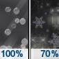 Temperature: 27°F Wind Speed: 16 to 24 mph Wind Direction: NE Forecast: Snow before 10pm, then snow and sleet between 10pm and midnight, then sleet likely and rain likely between midnight and 4am. Cloudy. Low around 27, with temperatures rising to around 33 overnight. Northeast wind 16 to 24 mph. Chance of precipitation is 100%. New snow accumulation of 3 to 7 inches possible. |
