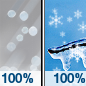 Temperature: 12°F Wind Speed: 7 mph Wind Direction: N Forecast: Snow and a slight chance of sleet and a slight chance of freezing rain. Mostly cloudy, with a low around 12. Chance of precipitation is 80%. |
