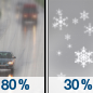Temperature: 28°F Wind Speed: 8 to 18 mph Wind Direction: W Forecast: A slight chance of rain and snow after 7pm. Mostly cloudy, with a low around 28. |