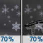 Temperature: 39°F Wind Speed: 6 to 10 mph Wind Direction: SW Forecast: A chance of snow between 7am and 1pm, then rain and snow likely. Mostly cloudy, with a high near 39. Chance of precipitation is 60%. |
