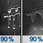 Temperature: 26°F Wind Speed: 3 to 8 mph Wind Direction: S Forecast: Freezing rain between 8pm and 1am, then freezing rain and rain between 1am and 2am, then rain likely and a chance of freezing rain and patchy fog. Cloudy. Low around 26, with temperatures rising to around 36 overnight. South wind 3 to 8 mph. Chance of precipitation is 90%. New ice accumulation of less than half an inch possible. |
