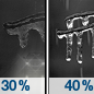 Temperature: 28°F Wind Speed: 3 mph Wind Direction: N Forecast: A chance of rain before 9pm, then a chance of freezing rain. Mostly cloudy, with a low around 28. North wind around 3 mph. Chance of precipitation is 40%. |
