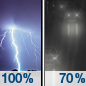 Temperature: 47°F Wind Speed: 10 to 24 mph Wind Direction: SSW Forecast: Showers and thunderstorms before 10pm, then rain likely. Some of the storms could be severe. Mostly cloudy, with a low around 47. South southwest wind 10 to 24 mph, with gusts as high as 44 mph. Chance of precipitation is 100%. New rainfall amounts between a half and three quarters of an inch possible. |
